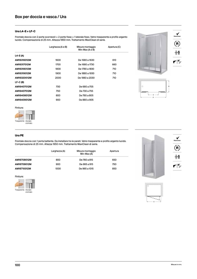 lucido. Compensazione di 25 mm. Altezza 1950 mm. Trattamento MaxiClean di serie.
