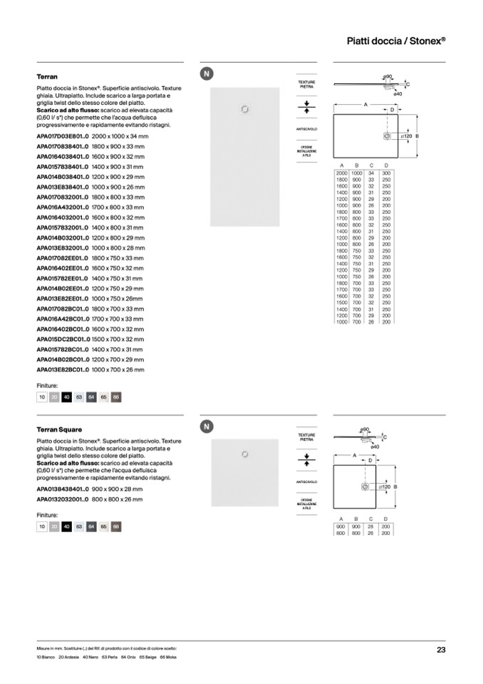 10 Bianco 20 Ardesia 40 Nero 63 Perla 64 Onix 65 Beige 66 Moka