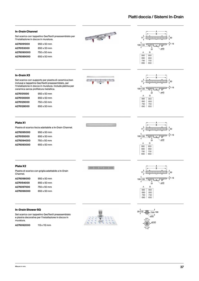 Piatti doccia / Sistemi In-Drain