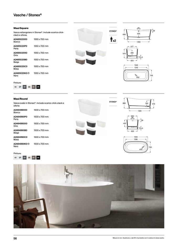 Misure in mm. Sostituire (..) del Rif. di prodotto con il codice di colore scelto: