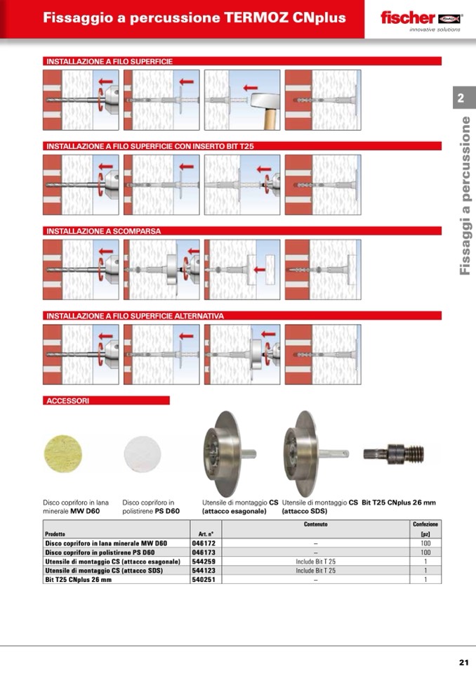 INSTALLAZIONE A FILO SUPERFICIE CON INSERTO BIT T25