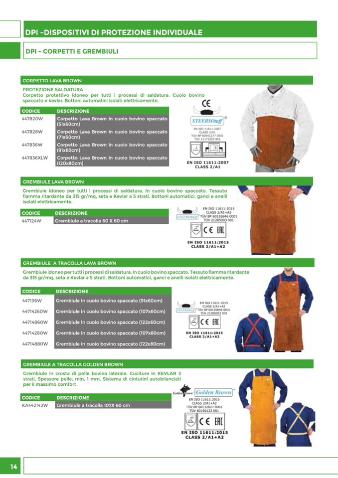 Grembiule idoneo per tutti i processi di saldatura. In cuoio bovino spaccato. Tessuto