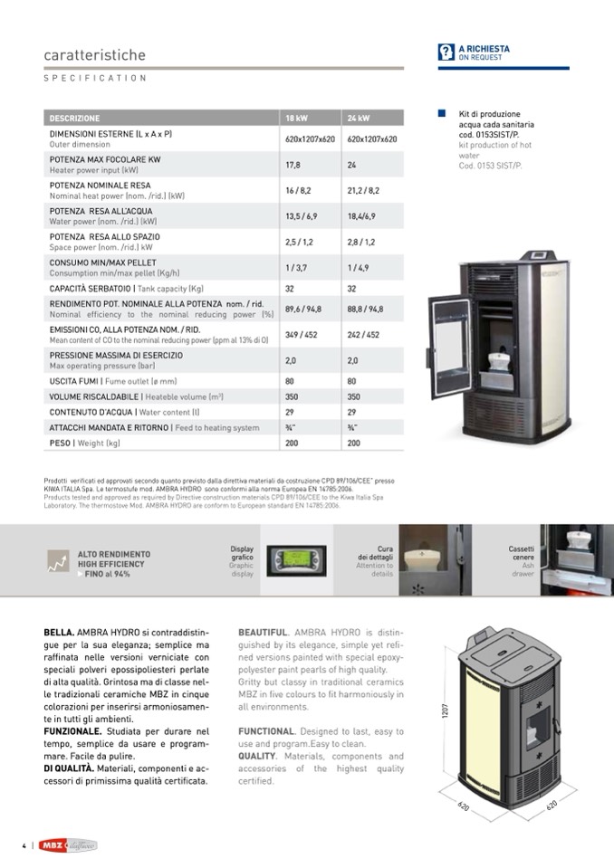 KIWA ItAlIA spa. le termostufe mod. AmBrA hYDr