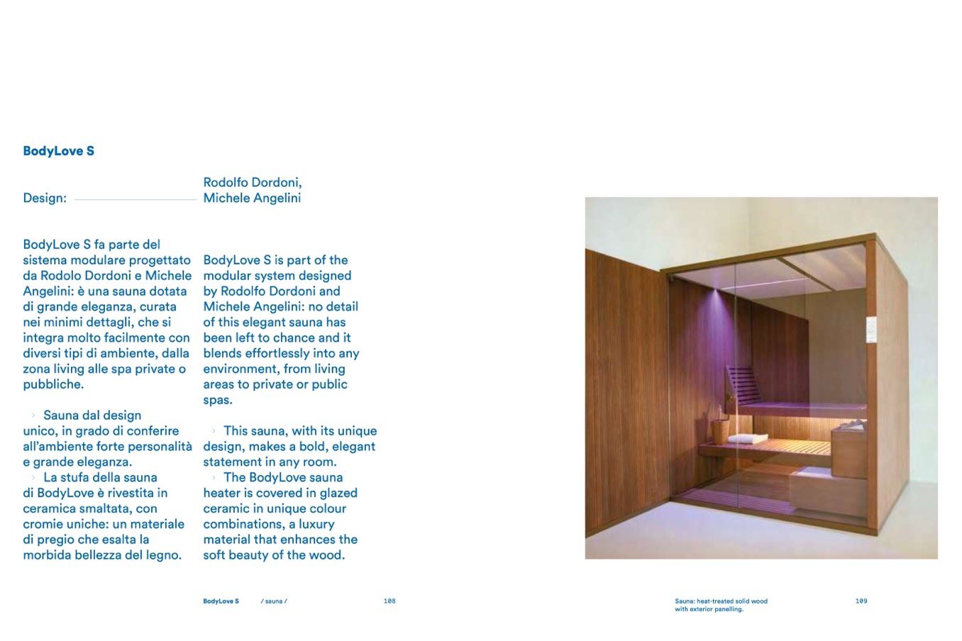 Sauna: heat-treated solid wood
