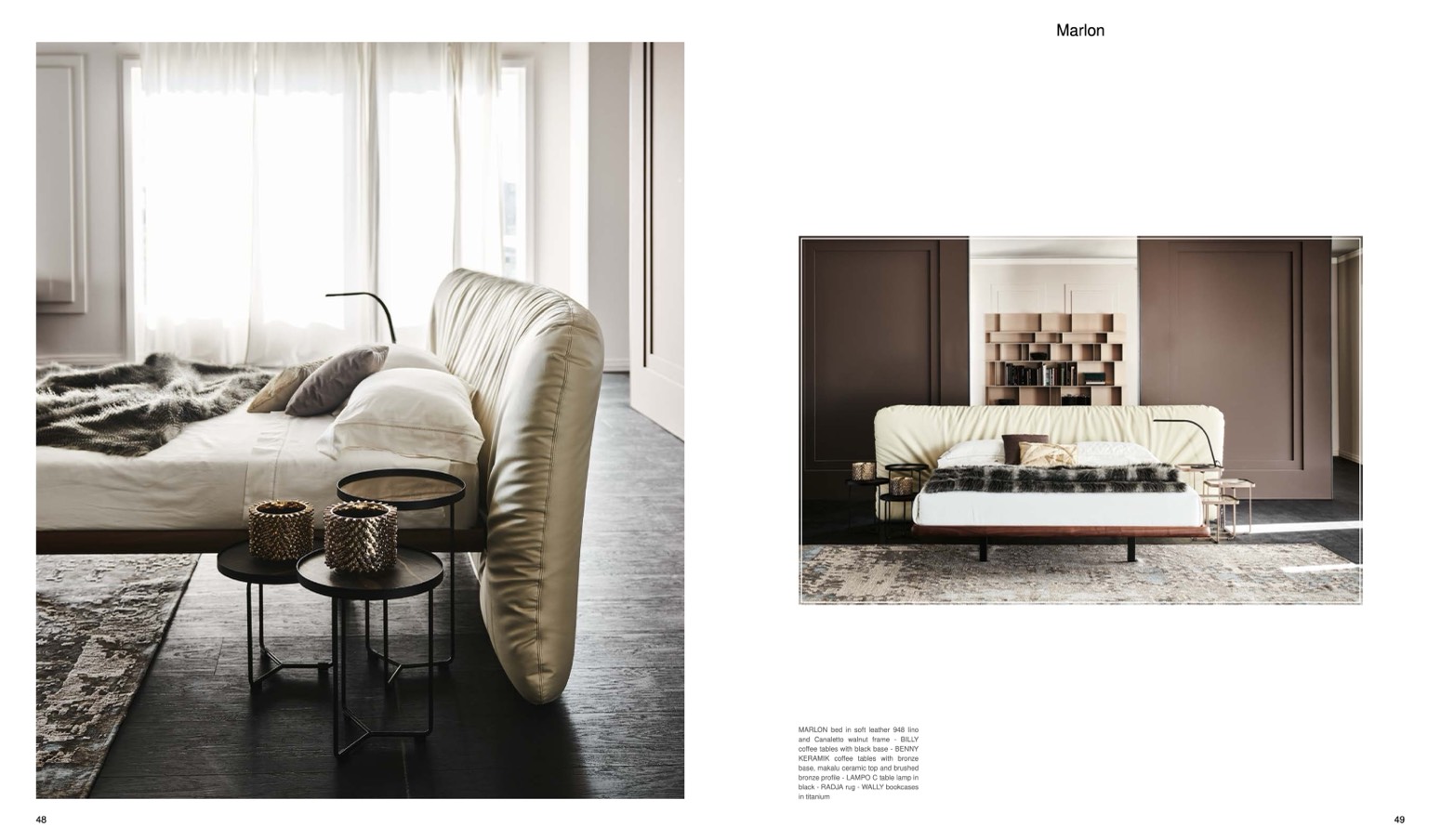 MARLON bed in soft leather 948 lino