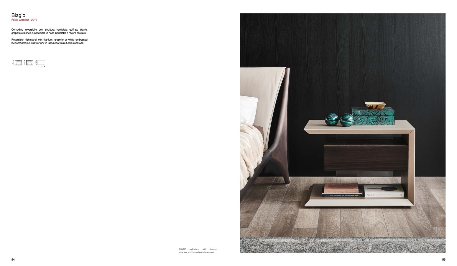 graphite o bianco. Cassettiera in noce Canaletto o rovere bruciato.