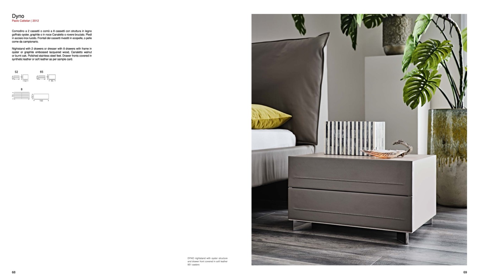 in acciaio inox lucido. Frontali dei cassetti rivestiti in ecopelle, o pelle