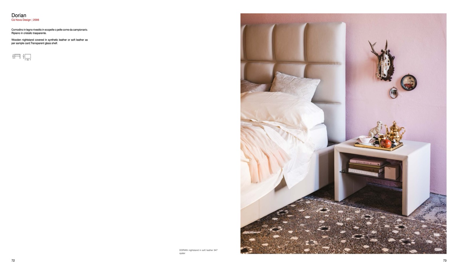 Comodino in legno rivestito in ecopelle o pelle come da campionario.