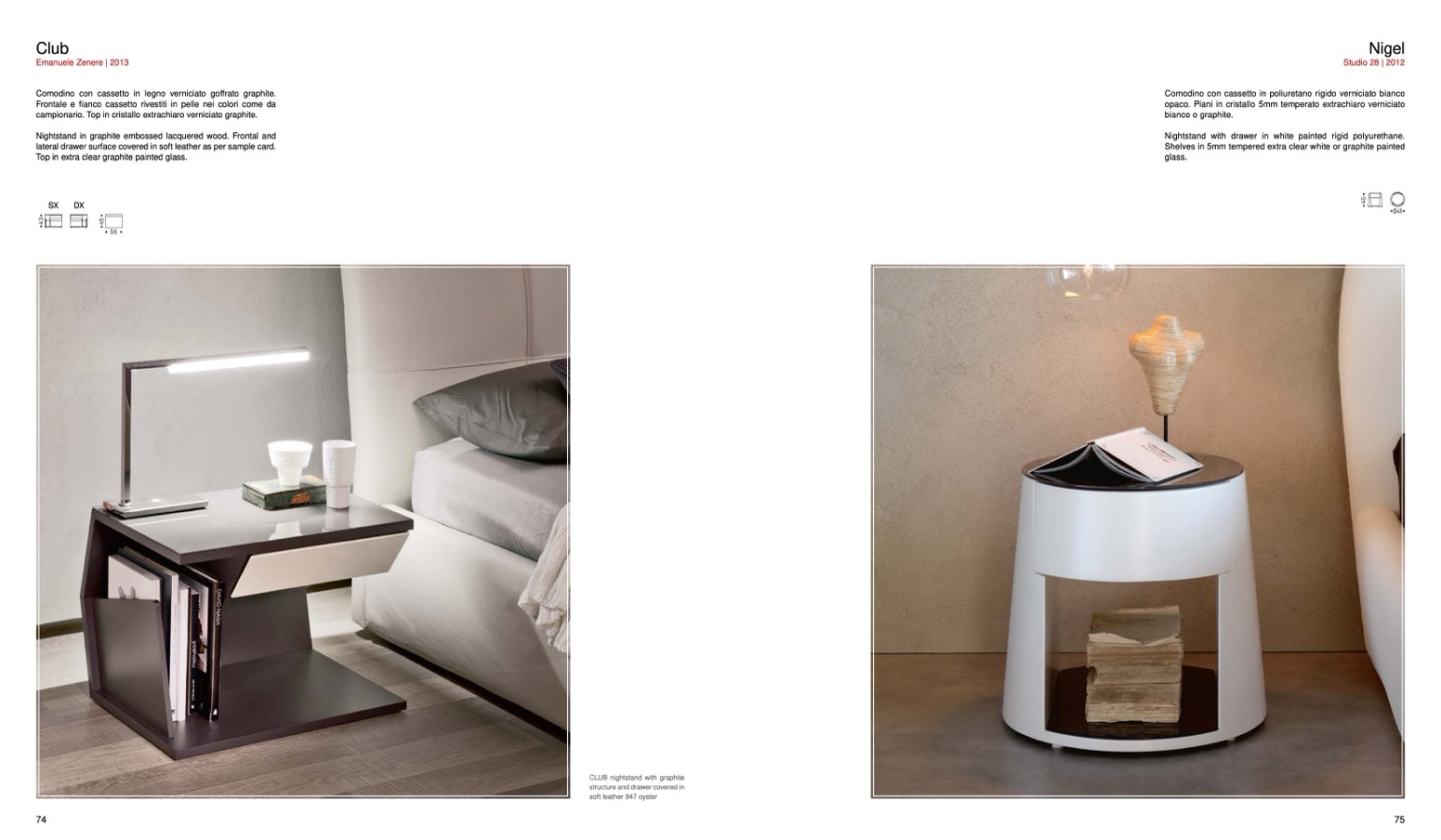Nightstand in graphite embossed lacquered wood. Frontal and