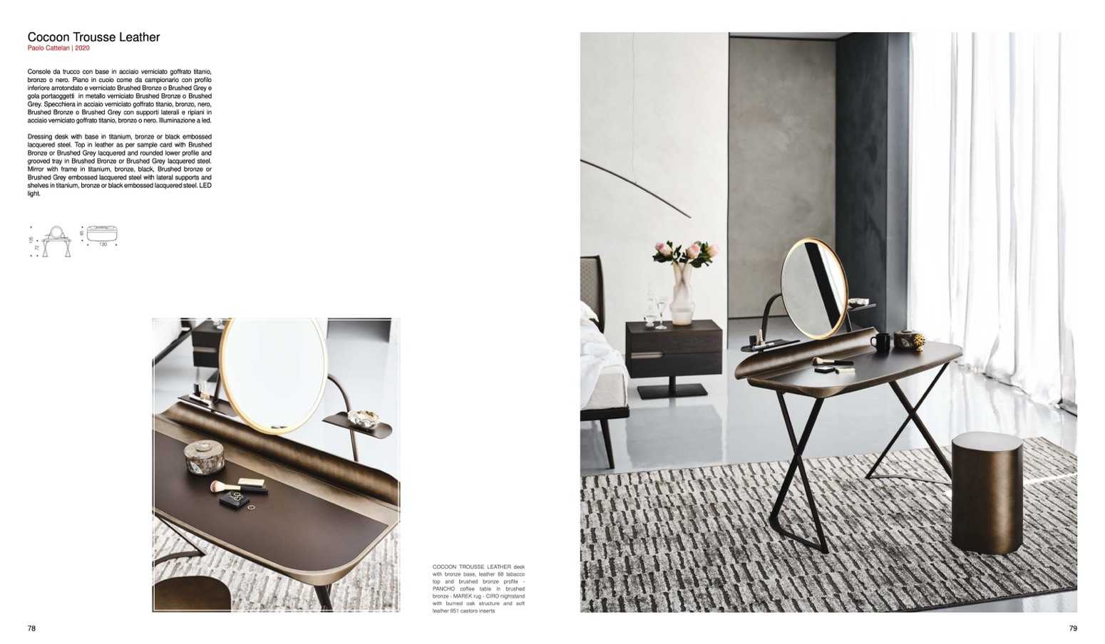Dressing desk with base in titanium, bronze or black embossed