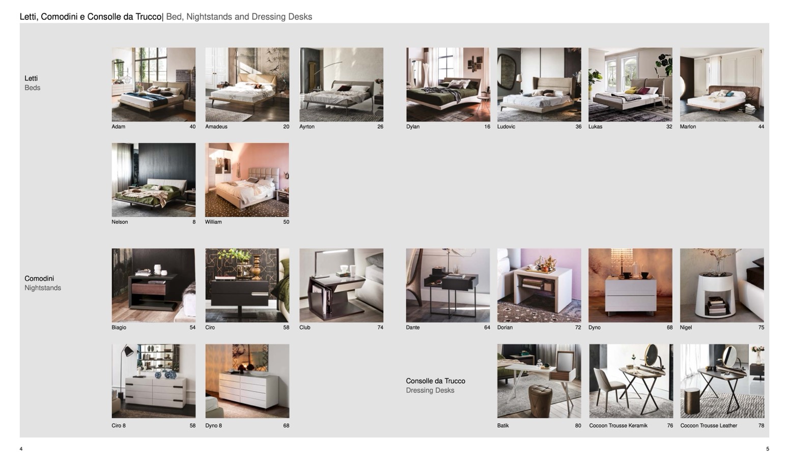 Letti, Comodini e Consolle da Trucco| Bed, Nightstands and Dressing Desks