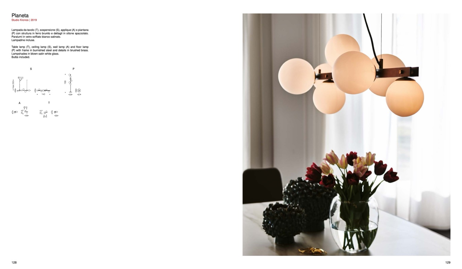 Lampada da tavolo (T), sospensione (S), applique (A) e piantana