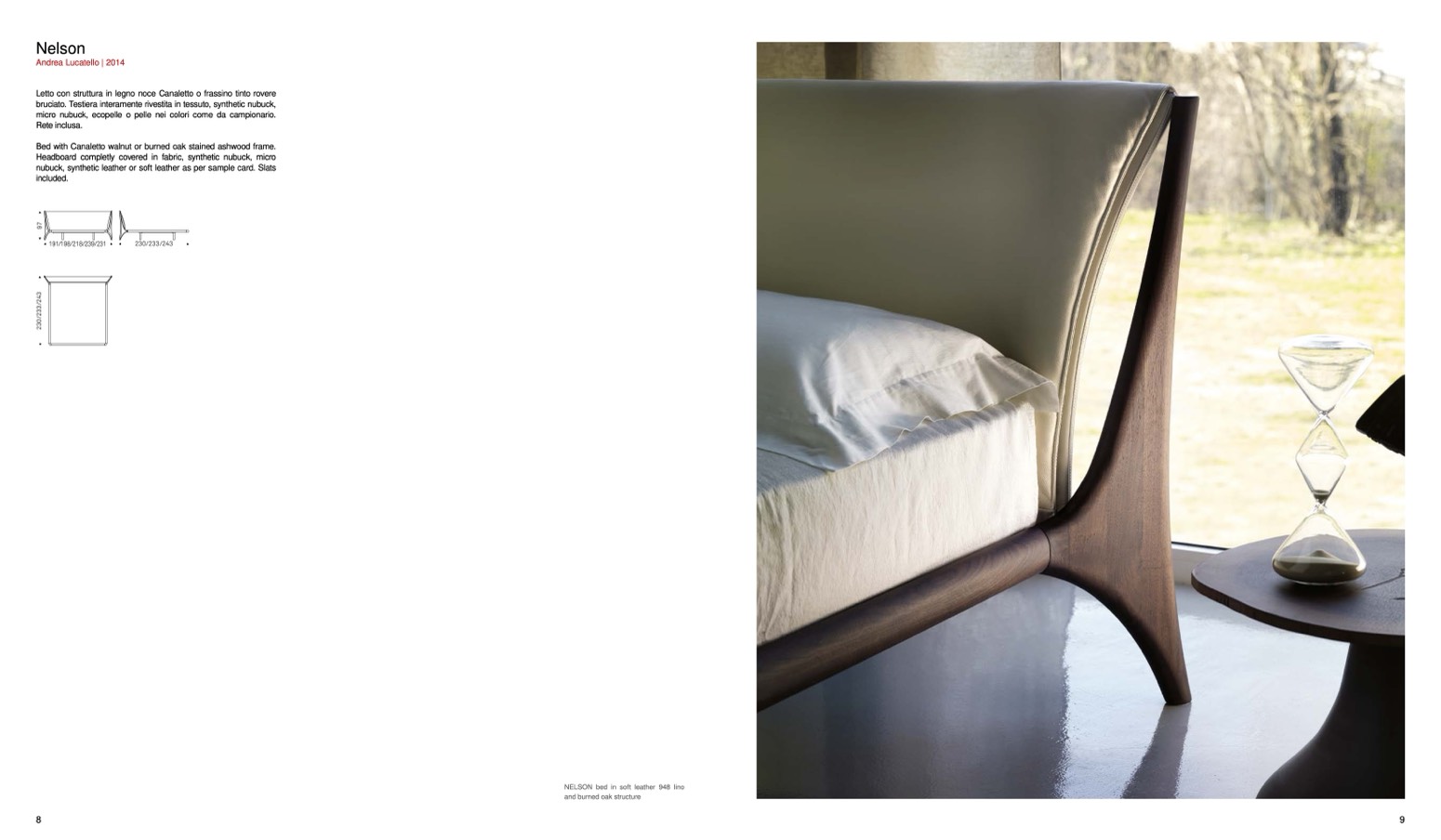 bruciato. Testiera interamente rivestita in tessuto, synthetic nubuck,