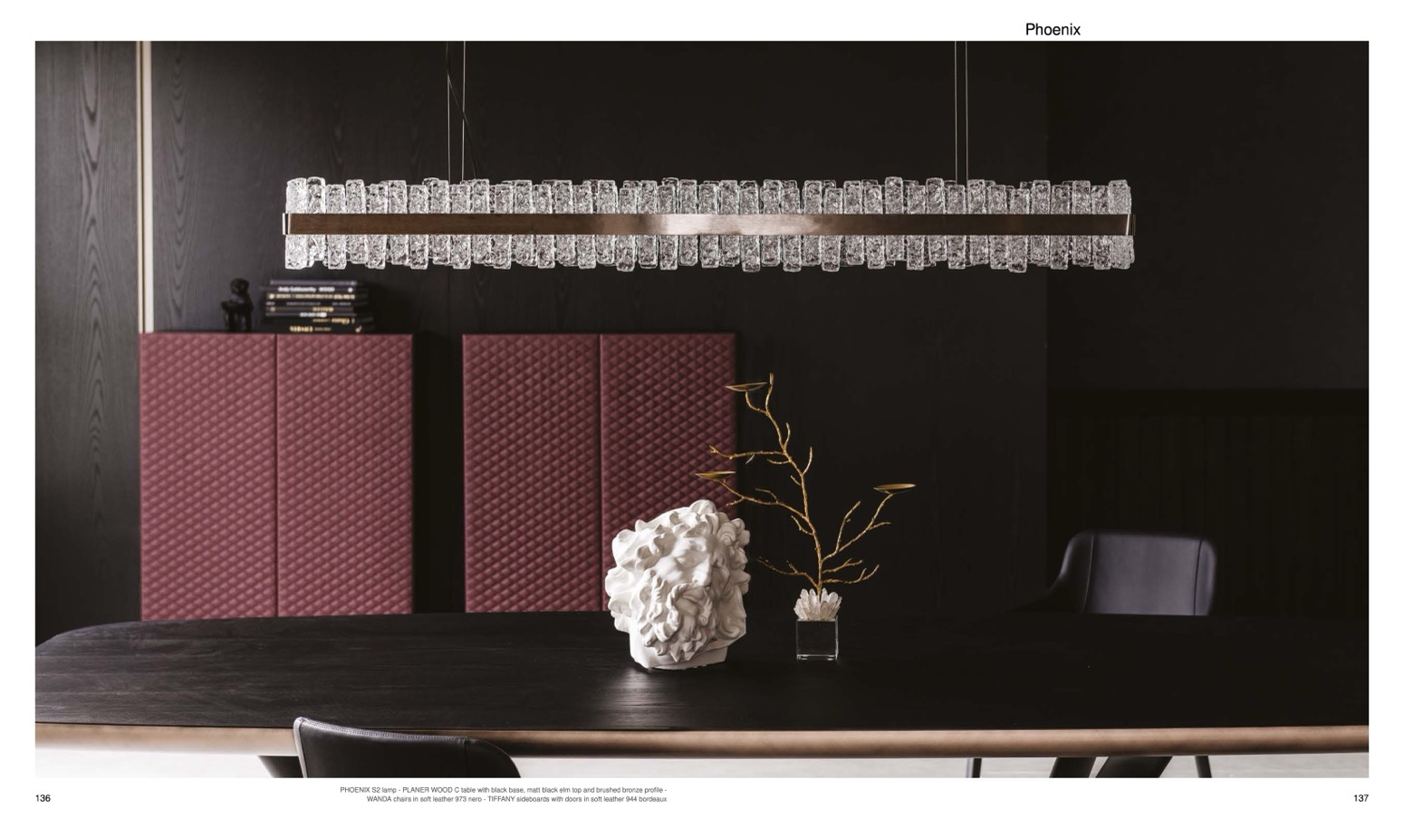WANDA chairs in soft leather 973 nero - TIFFANY sideboards with doors in soft leather 944 bordeaux