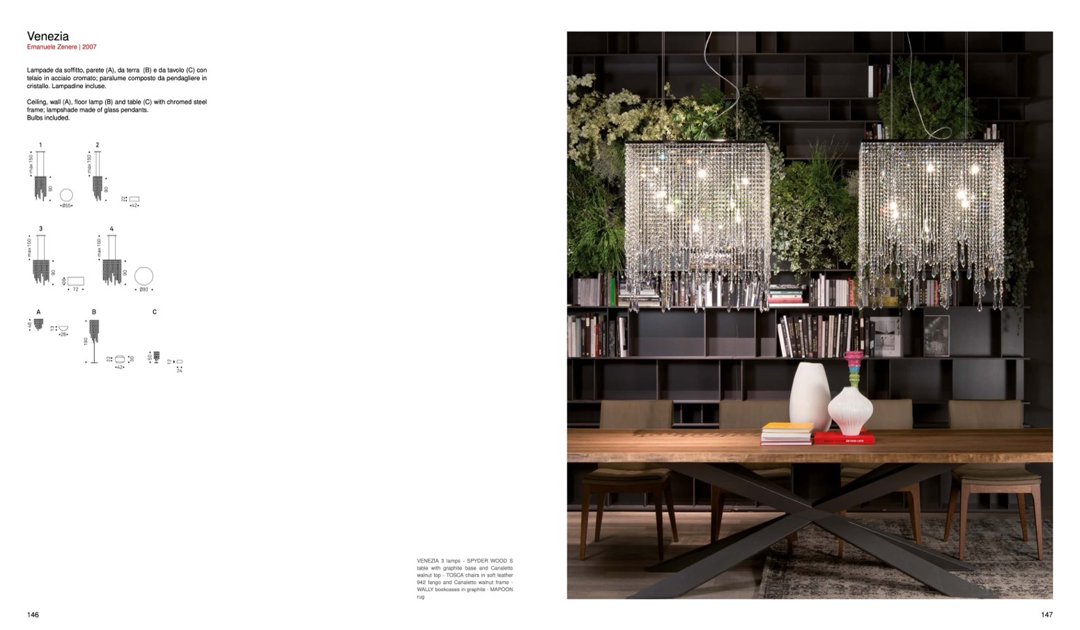 telaio in acciaio cromato; paralume composto da pendagliere in