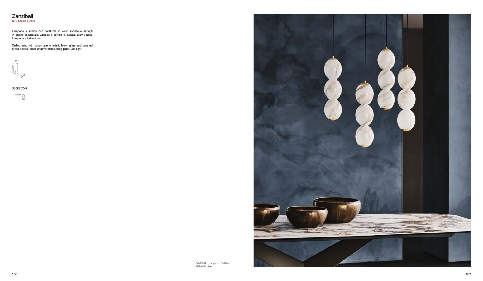 in ottone spazzolato. Attacco a soffitto in acciaio cromo nero.