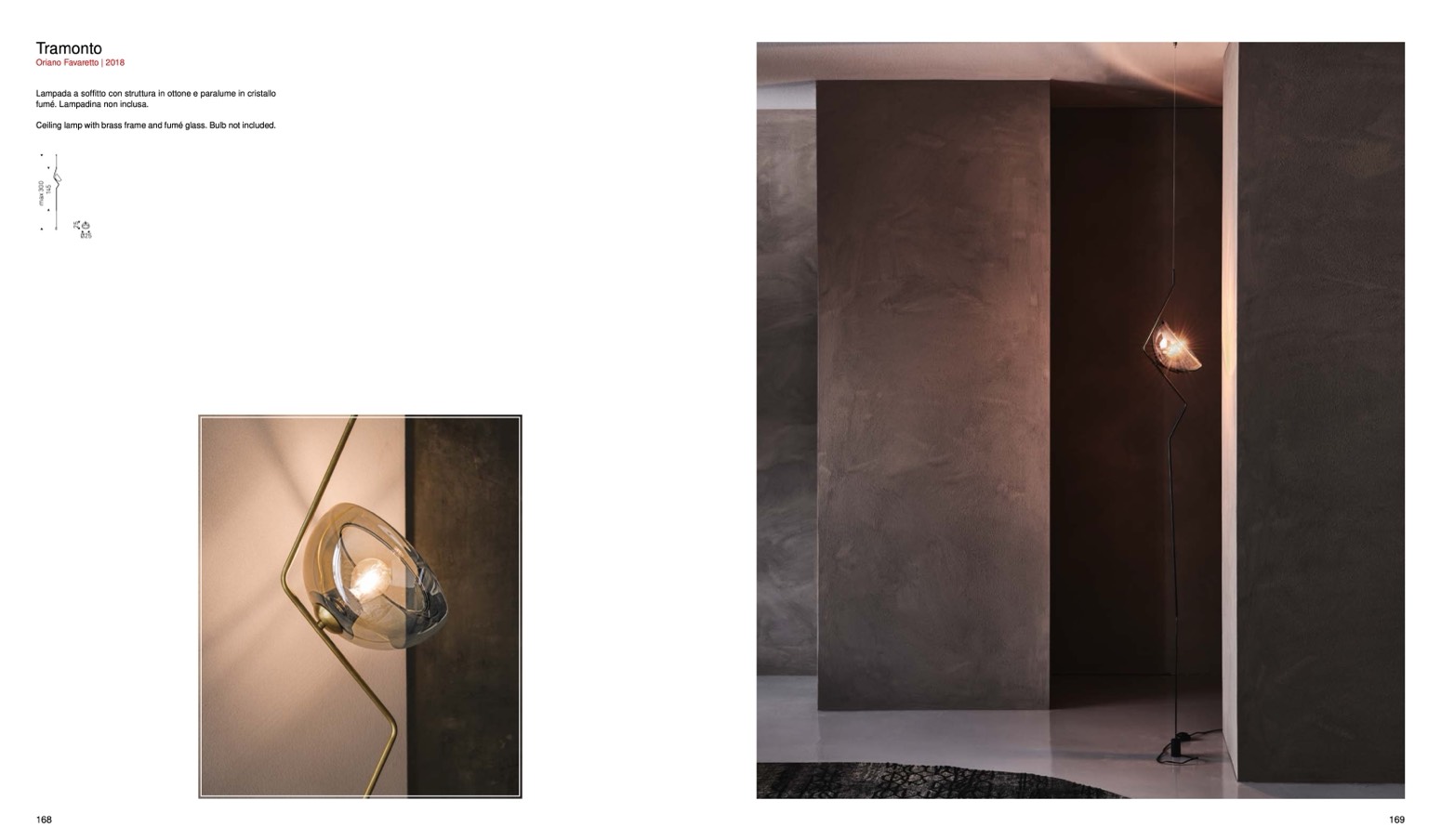 Ceiling lamp with brass frame and fumé glass. Bulb not included.