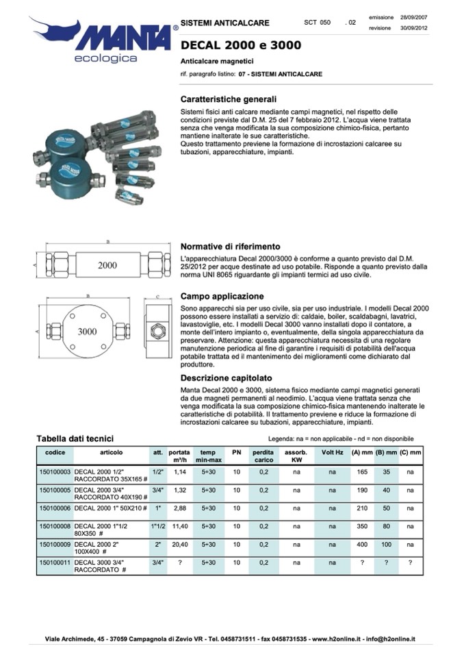 rif. paragrafo listino: 07 - SISTEMI ANTICALCARE