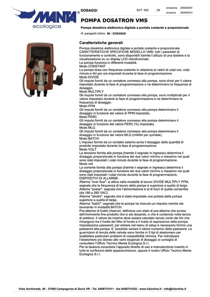 Pompa dosatrice elettronica digitale a portata costante e proporzionale.