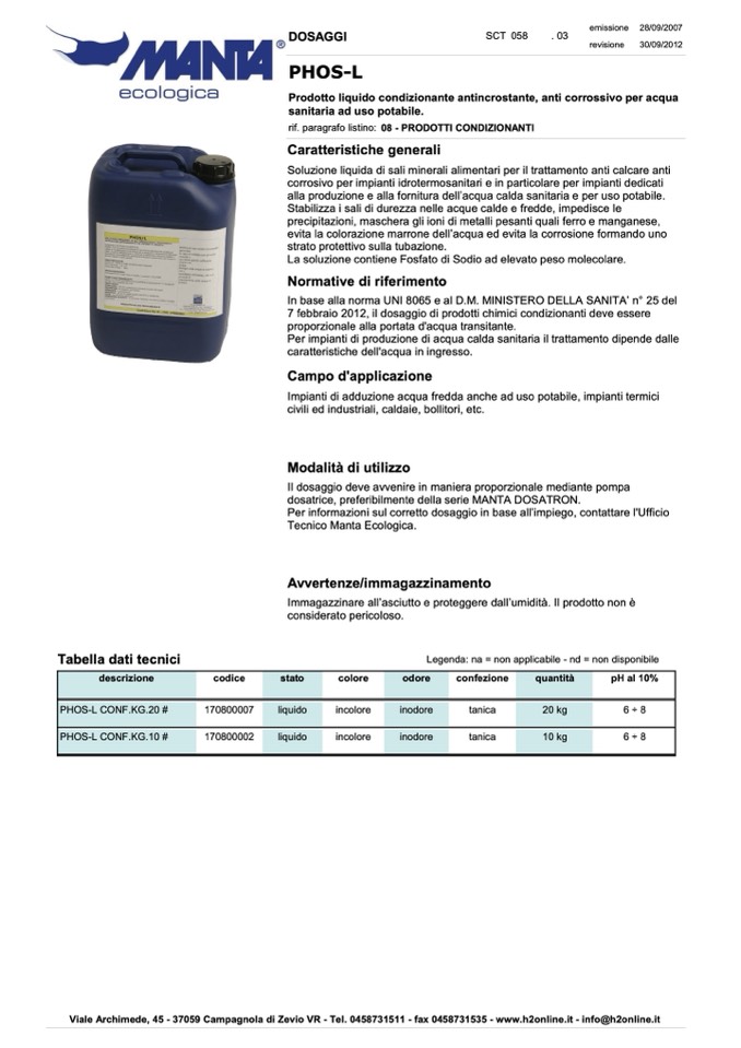 7 febbraio 2012, il dosaggio di prodotti chimici condizionanti deve essere