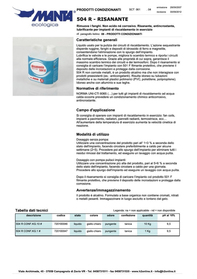 Liquido usato per la pulizia dei circuiti di riscaldamento. L’azione sequestrante