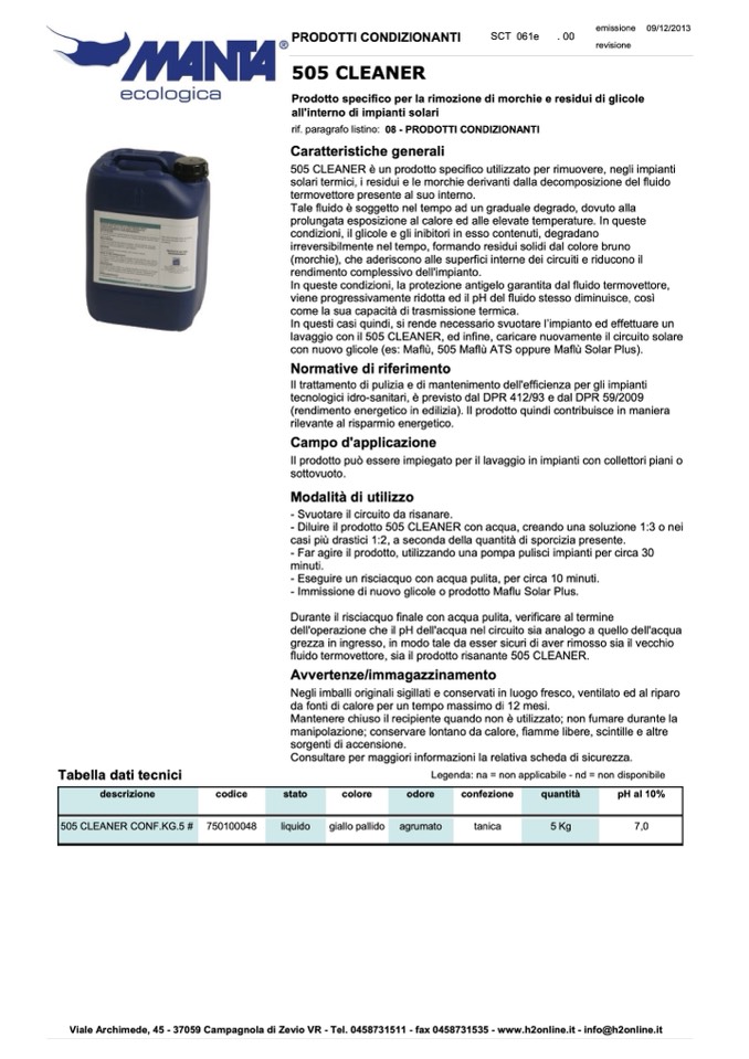 fluido termovettore, sia il prodotto risanante 505 CLEANER.