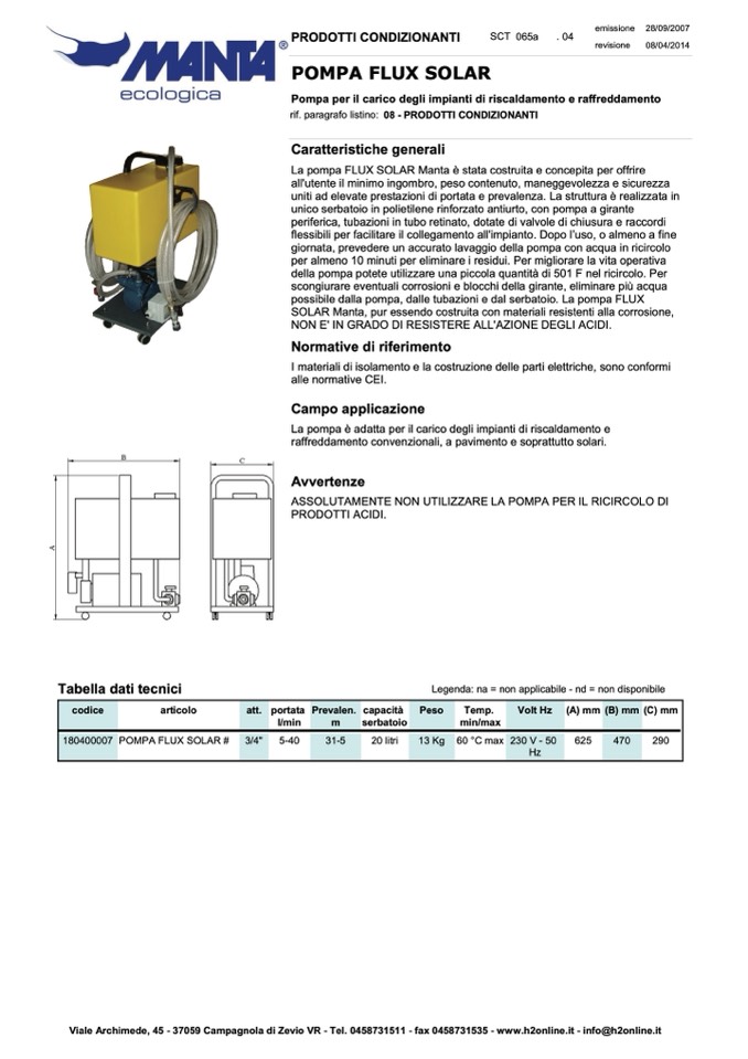 Viale Archimede, 45 - 37059 Campagnola di Zevio VR - Tel. 0458731511 - fax 0458731535 - www.h2online.it - info@h2online.it