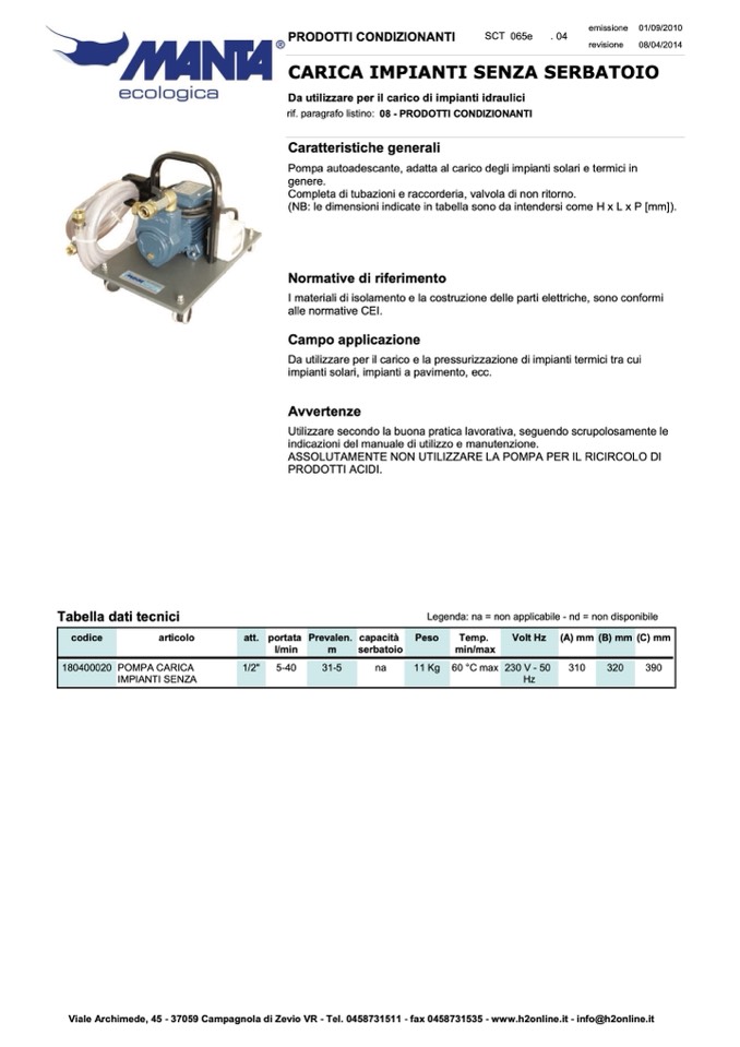 Pompa autoadescante, adatta al carico degli impianti solari e termici in