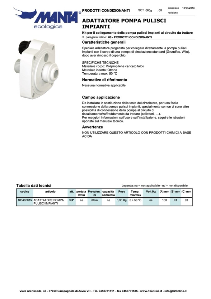 rif. paragrafo listino: 08 - PRODOTTI CONDIZIONANTI