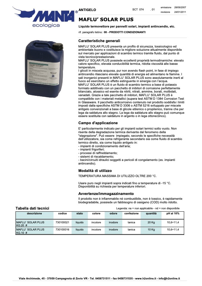 MAFLU’ SOLAR PLUS è un fluido di scambio termico a base di potassio