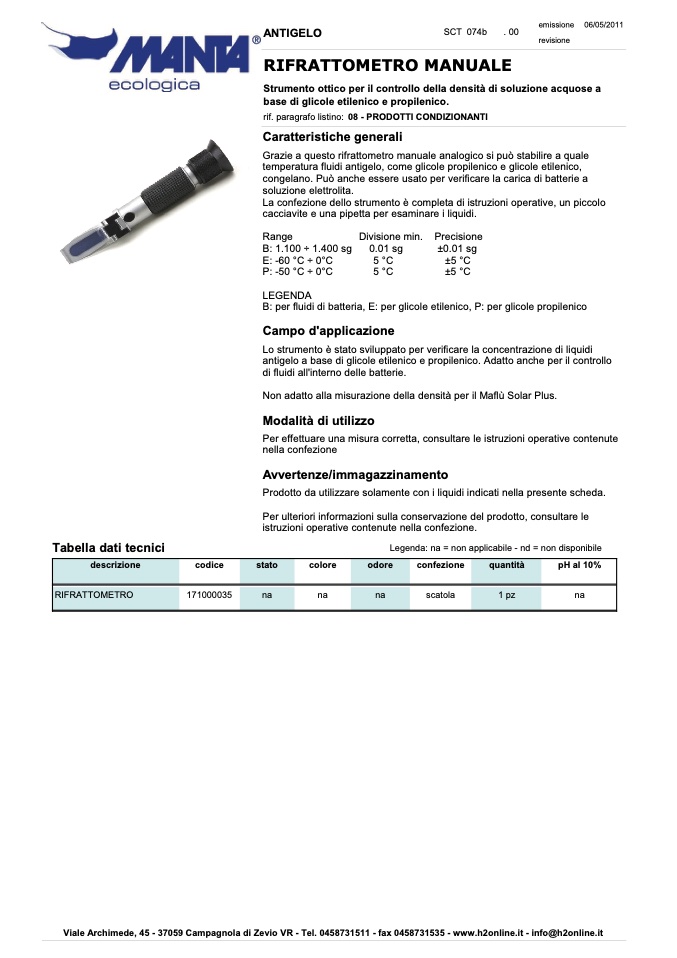 antigelo a base di glicole etilenico e propilenico. Adatto anche per il controllo