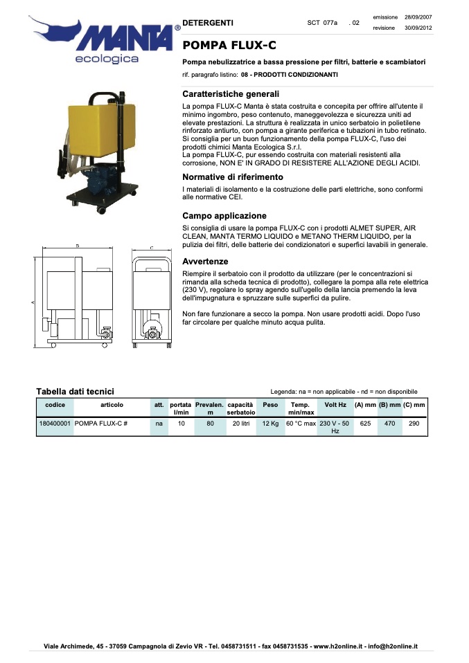 Si consiglia per un buon funzionamento della pompa FLUX-C, l'uso dei