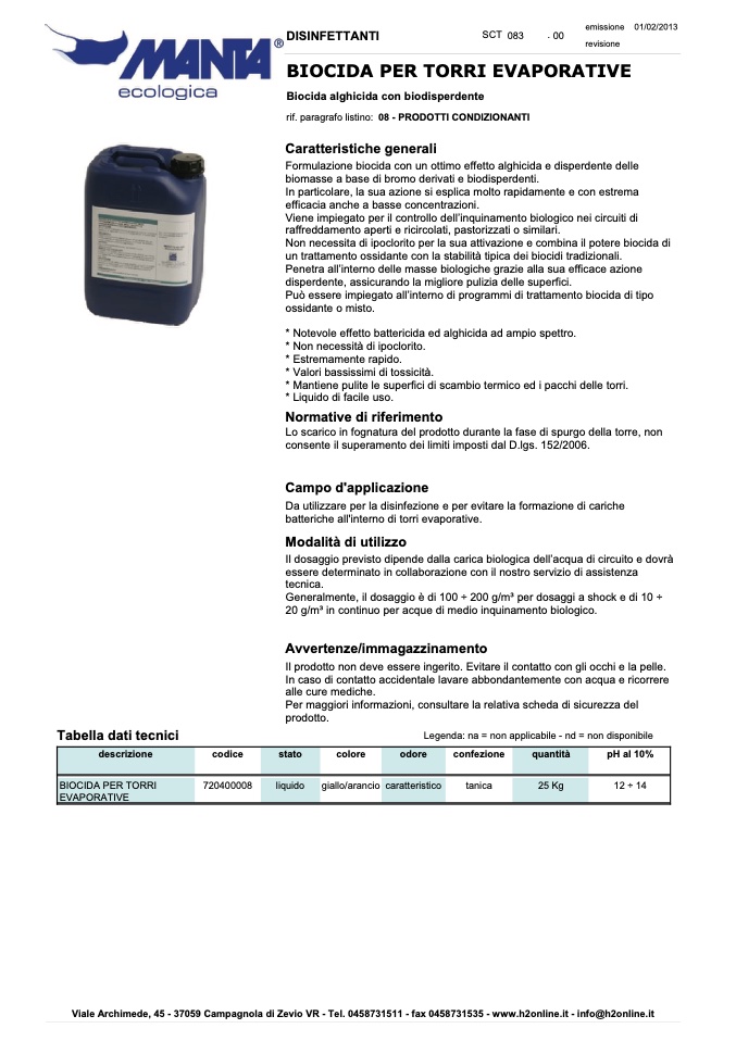 Il dosaggio previsto dipende dalla carica biologica dell’acqua di circuito e dovrà
