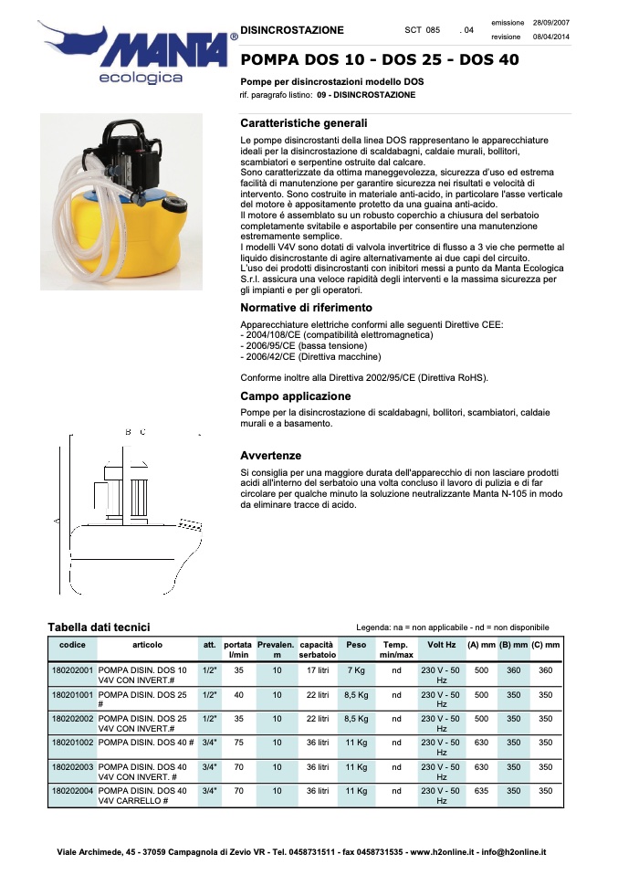 Le pompe disincrostanti della linea DOS rappresentano le apparecchiature