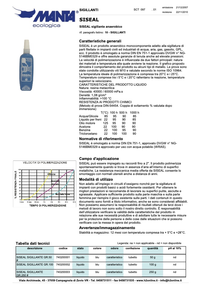 SISEAL è un prodotto anaerobico monocomponente adatto alla sigillatura di