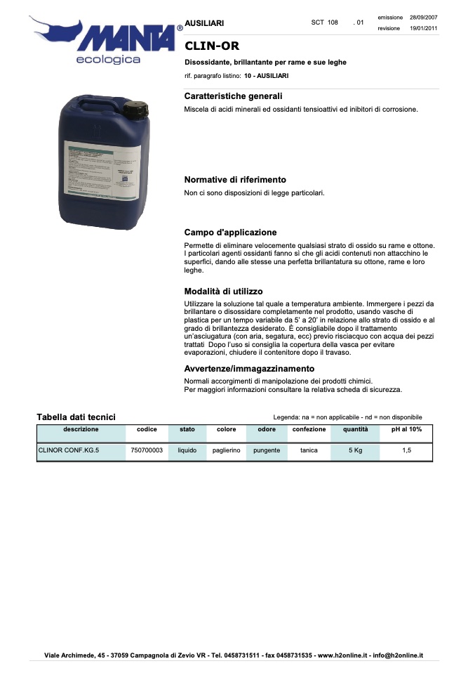 brillantare o disossidare completamente nel prodotto, usando vasche di