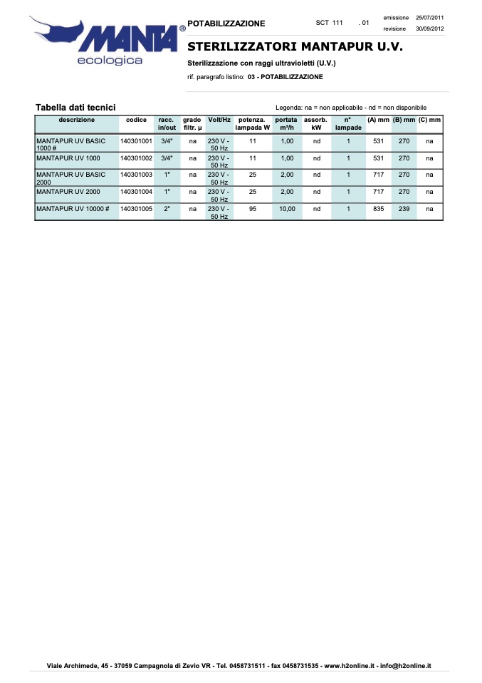 rif. paragrafo listino: 03 - POTABILIZZAZIONE