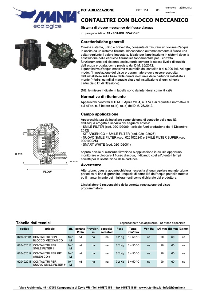 dell'acqua erogata, come previsto dal D.M. 25/2012.