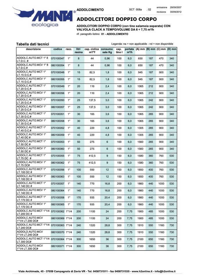 rif. paragrafo listino: 01 - ADDOLCIMENTO