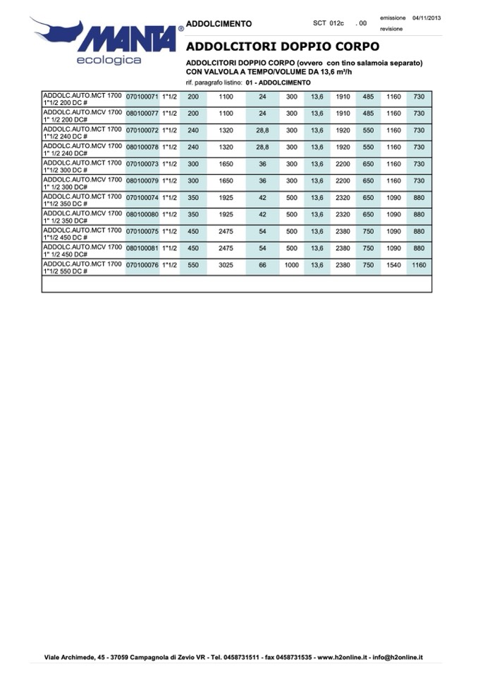 rif. paragrafo listino: 01 - ADDOLCIMENTO