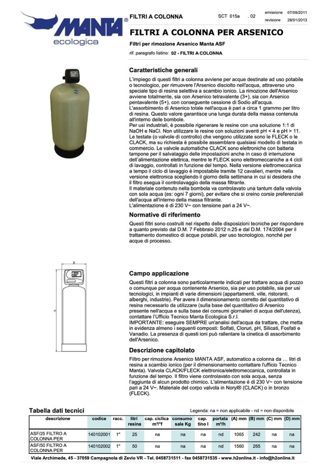 Filtro per rimozione Arsenico MANTA ASF, automatico a colonna da ... litri di