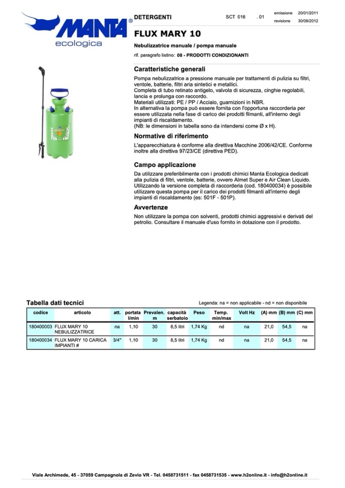 Da utilizzare preferibilmente con i prodotti chimici Manta Ecologica dedicati