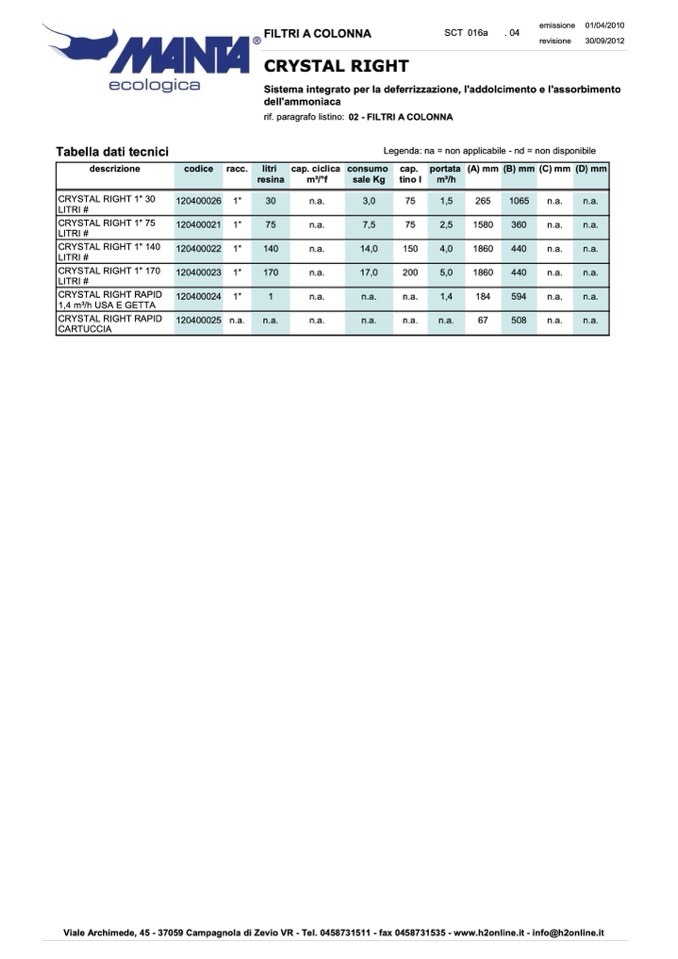 rif. paragrafo listino: 02 - FILTRI A COLONNA