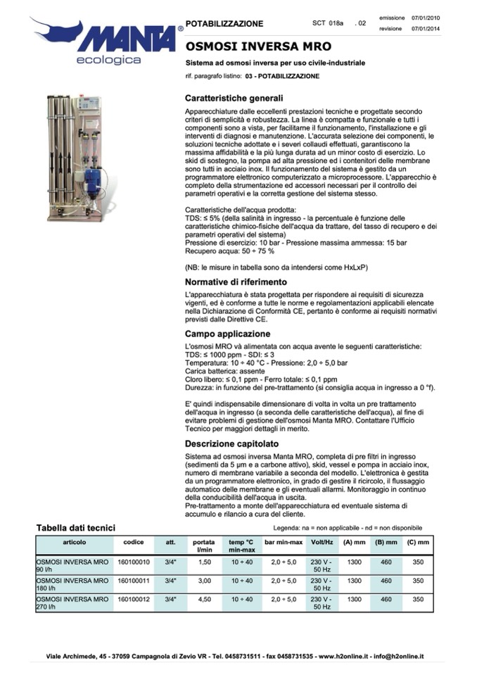 evitare problemi di gestione dell'osmosi Manta MRO. Contattare l'Ufficio