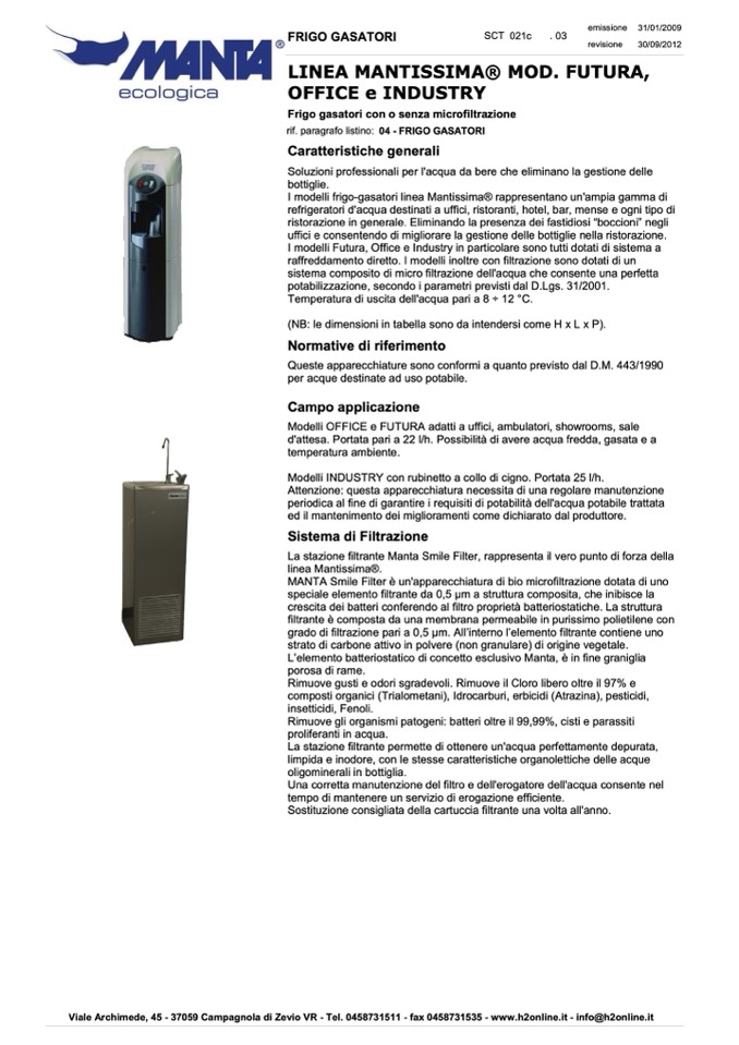 Viale Archimede, 45 - 37059 Campagnola di Zevio VR - Tel. 0458731511 - fax 0458731535 - www.h2online.it - info@h2online.it