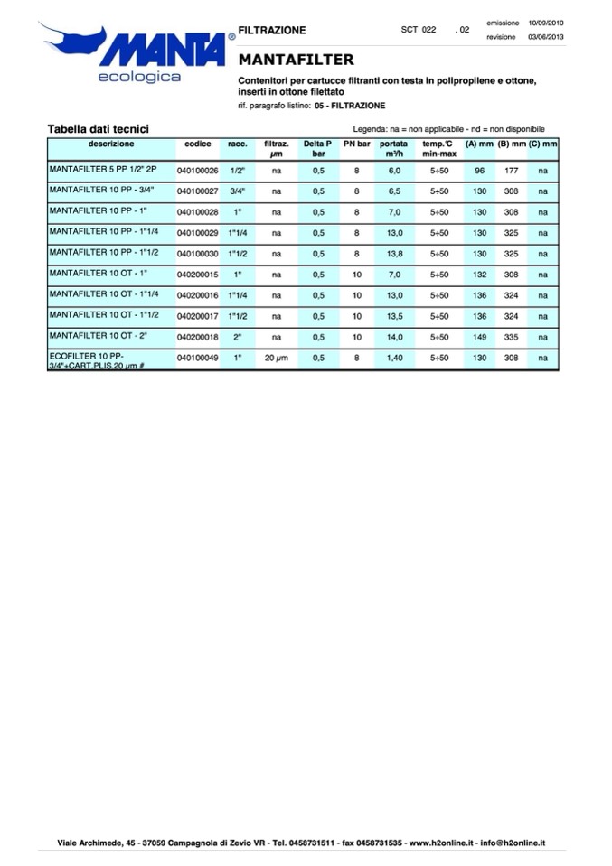 rif. paragrafo listino: 05 - FILTRAZIONE