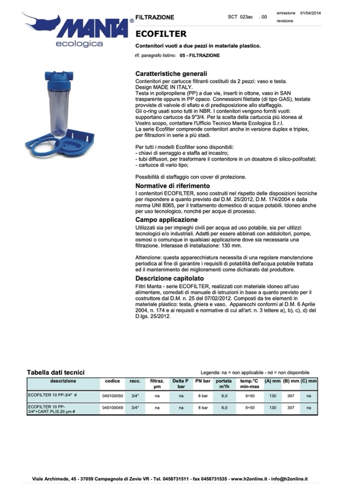 Vostro scopo, contattare l'Ufficio Tecnico Manta Ecologica S.r.l.