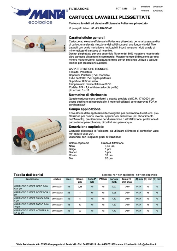 rif. paragrafo listino: 05 - FILTRAZIONE