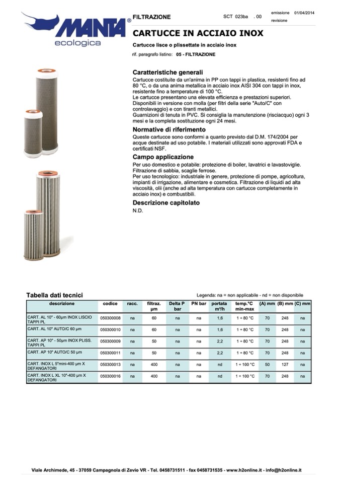 rif. paragrafo listino: 05 - FILTRAZIONE