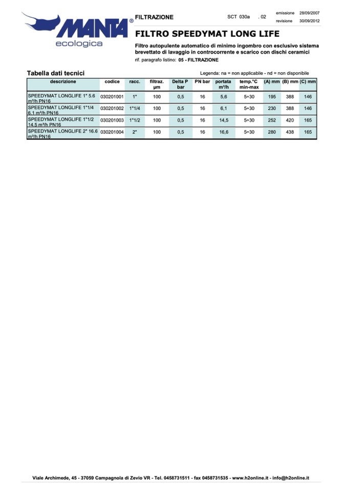 rif. paragrafo listino: 05 - FILTRAZIONE
